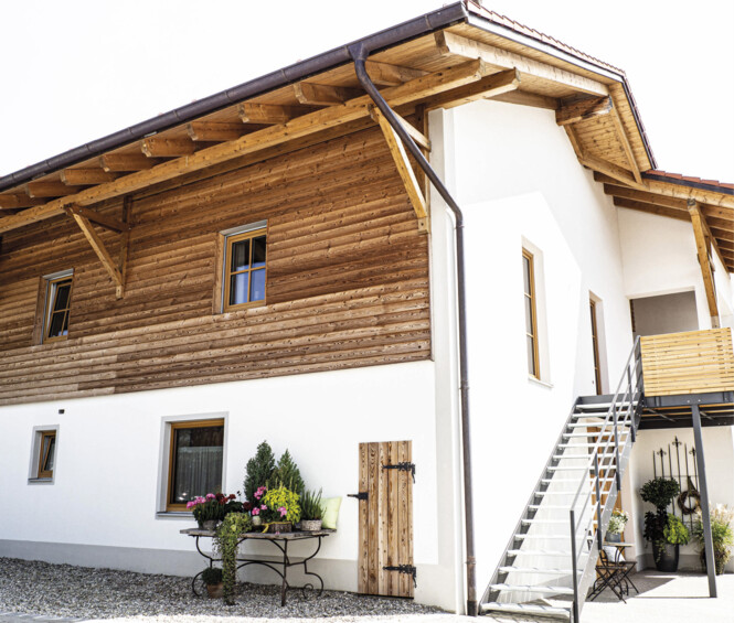 Umbau einer alten Scheune in mehreren Wohneinheiten I Fassadengestaltung mit waagrechter Lärchenschalung
